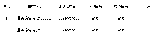 根據(jù)《024年產(chǎn)投集團(tuán)亳州金地工程造價(jià)咨詢有限公司外包人員公開(kāi)招聘公告》相關(guān)規(guī)定,現(xiàn)將擬入圍對(duì)象體檢、考察結(jié)果公示如下: