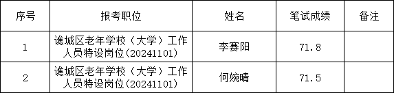 根據(jù)《2024年譙城區(qū)老年學校(大學)工作人員特設崗位公開招聘》精神,經(jīng)面試、體檢、考察、選崗等環(huán)節(jié),確定李賽陽、何婉晴2名同志符合本次招聘條件,擬錄用為2024年譙城區(qū)老年學校(大學)工作人員,現(xiàn)予公示。